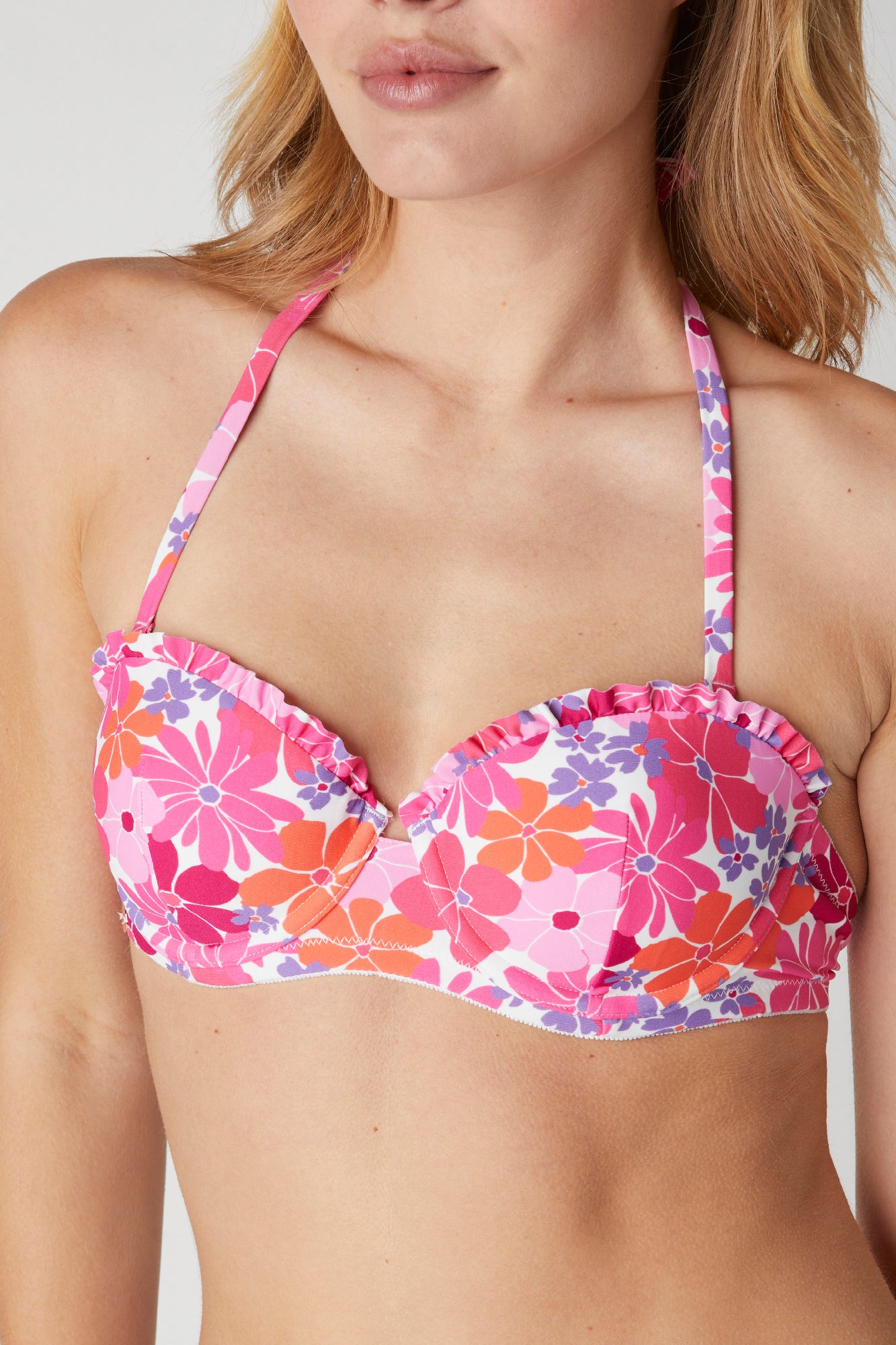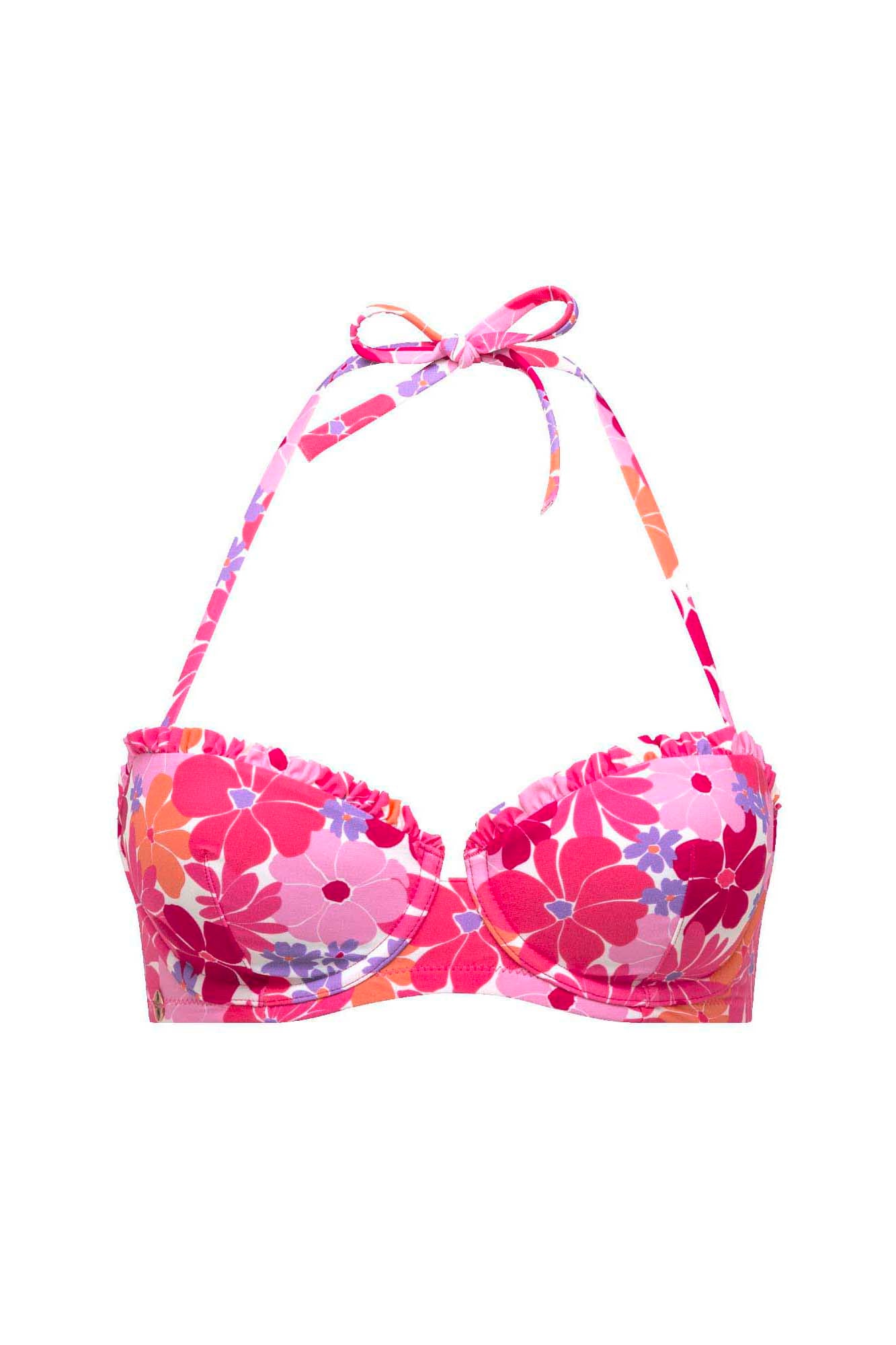 Haut de maillot de bain balconnet en microfibre imprimée au motif maxi floral 70's