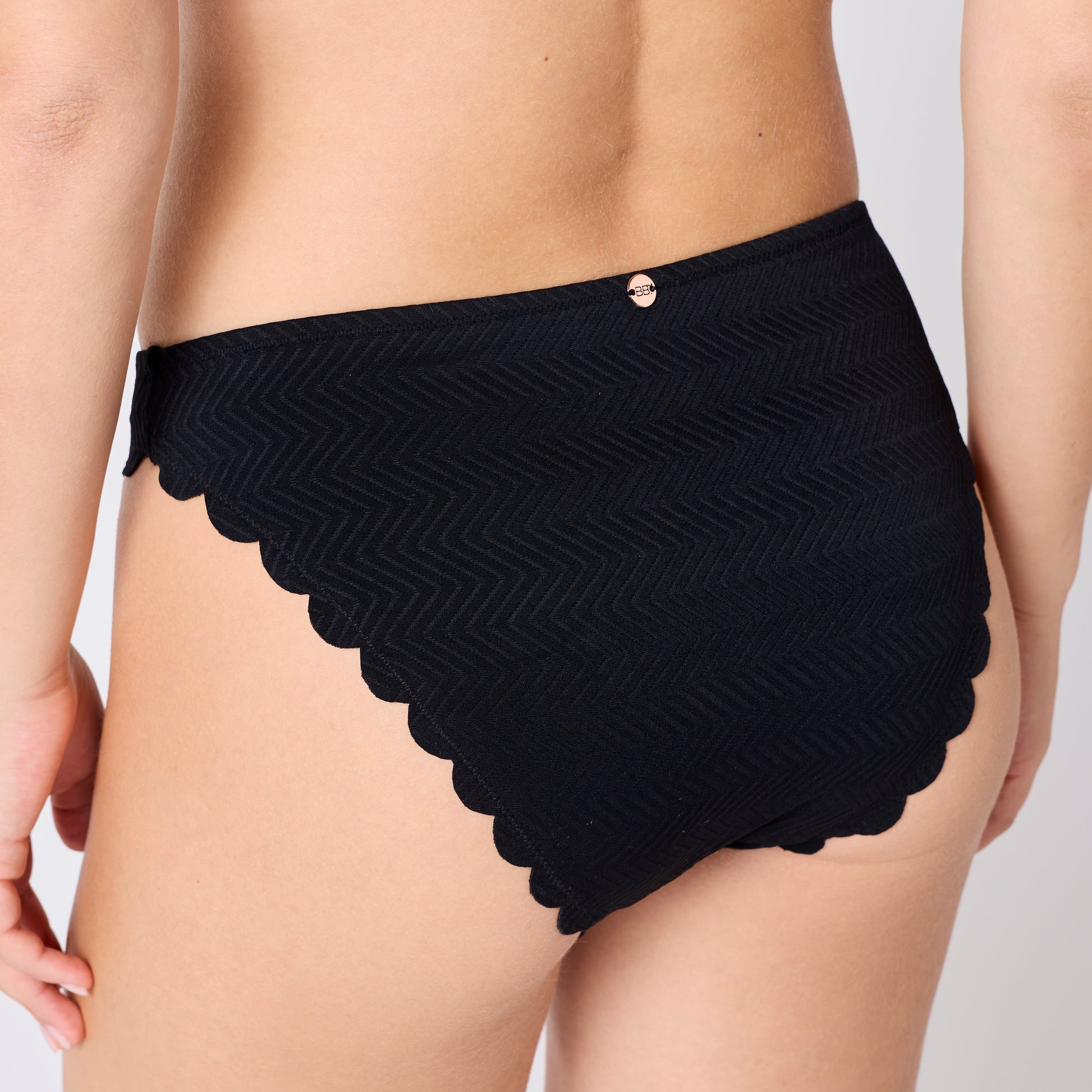 Le slip de bain BOHO CHIC est réalisé en microfibre jacquard au motif chevrons en relief pour un look texturé et tendance. Ses ouvertures de jambes en vague, sublimées par une finition découpe laser, apportent une touche élégante. Le devant et le dos sont doublés pour plus de confort, tandis qu’une médaille BB au dos signe le modèle. À associer avec le haut bandeau BOHO CHIC.