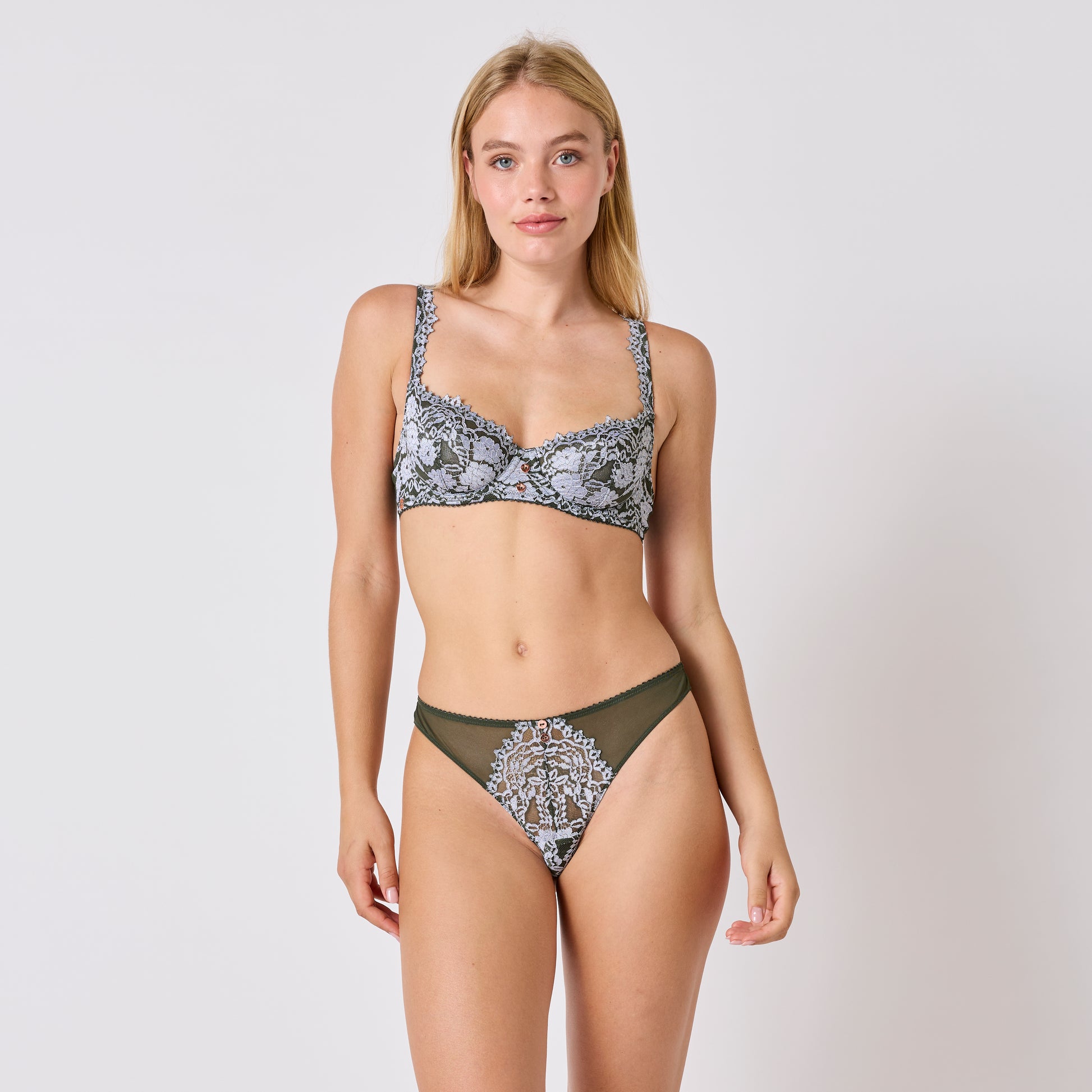 • Dentelle : 47% Polyamide, 39% Polyester, 14% Élasthanne